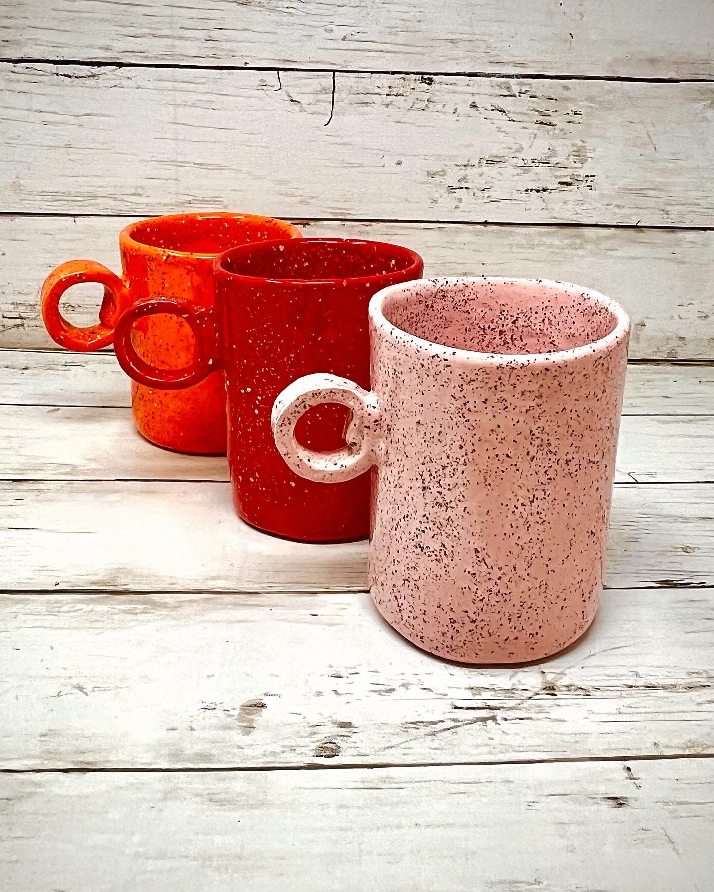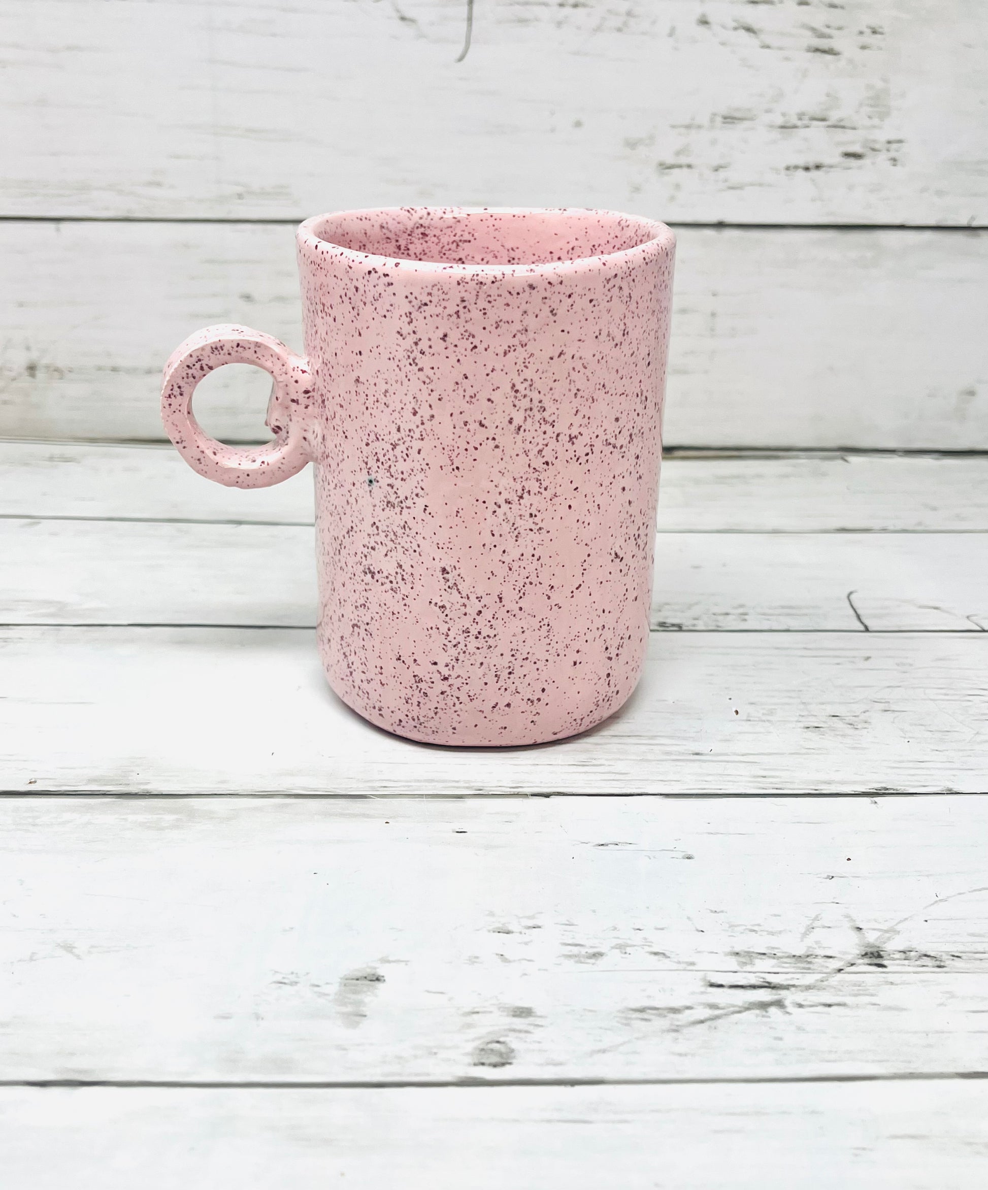 This colorful mug is hand-made with clay and hand painted with non-toxic glaze.